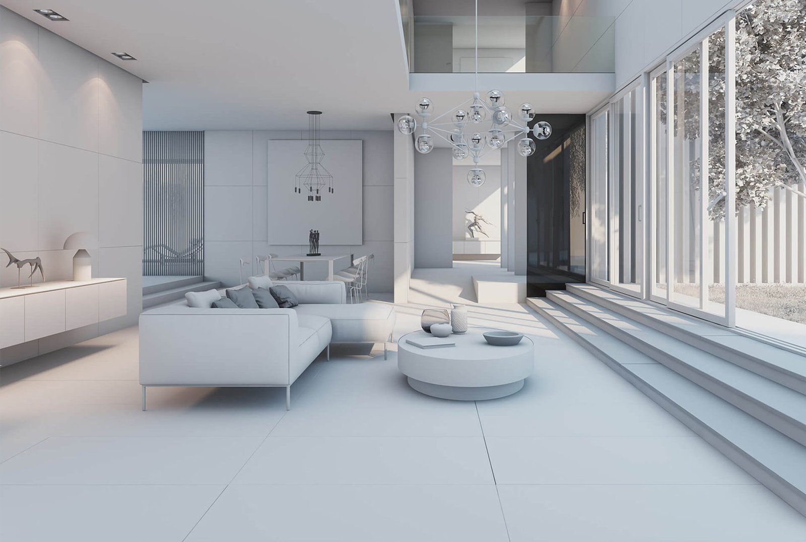 We propose creating a multifunctional space where you can make a choice: either to retire or be together with everybody. The space, clear of all unnecessary items, will take you to another dimension and help you to get tuned to a calm repose. Lot’s of light and air. In the center of the room there is a functional zoning volume, a white cube, dividing the entire living room into 5 zones: active pastime area, TV area, dressing area, secluded relaxation area and the central area – relaxation area, located inside the white volume.