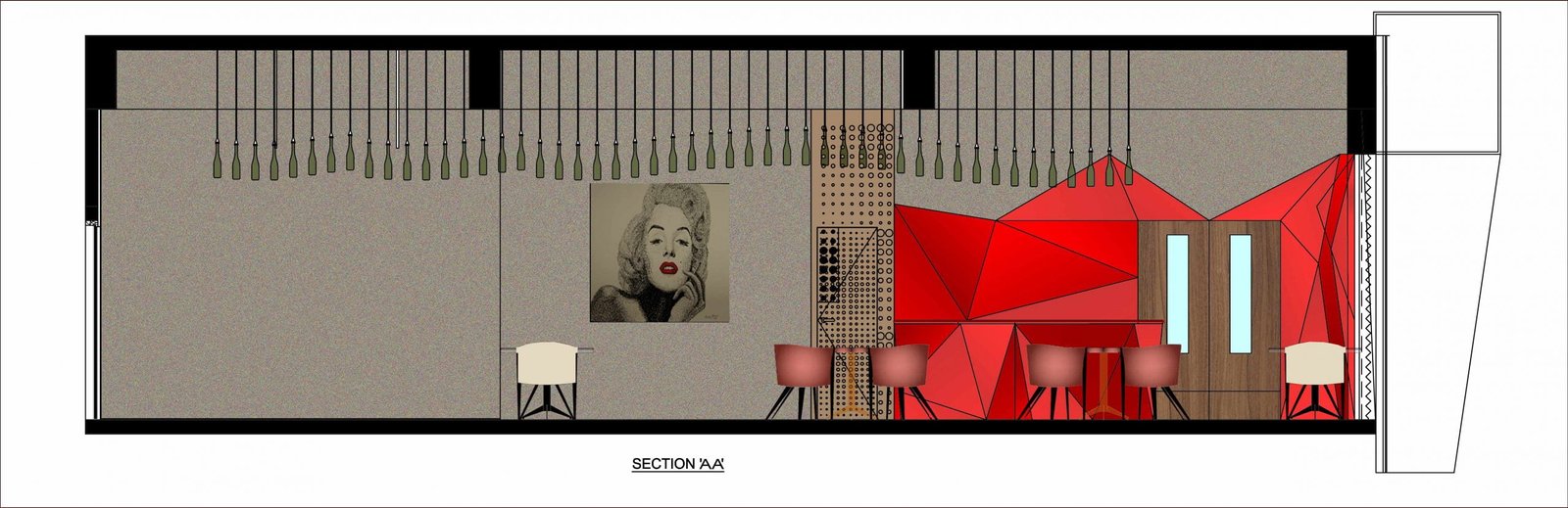 As the name suggests this space was designed to have designated levels. On the fine dine level an interesting play of colours and textures using green glass bottles adds some drama and depth to the space. All the levels spiral down to the dance floor.